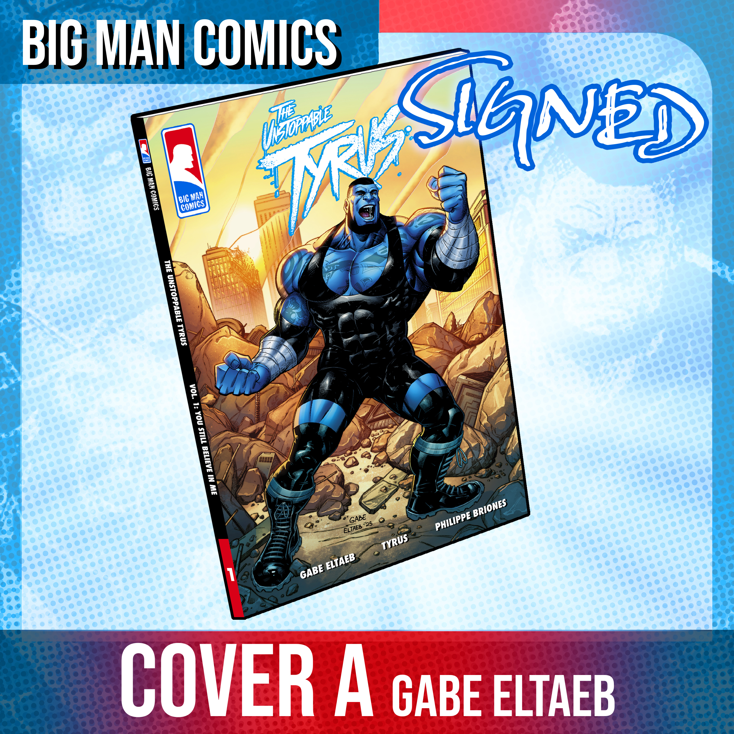 A 128 page The Unstoppable Tyrus graphic novel with cover A. Cover A art pencils/ink/colors by Gabe Eltaeb.